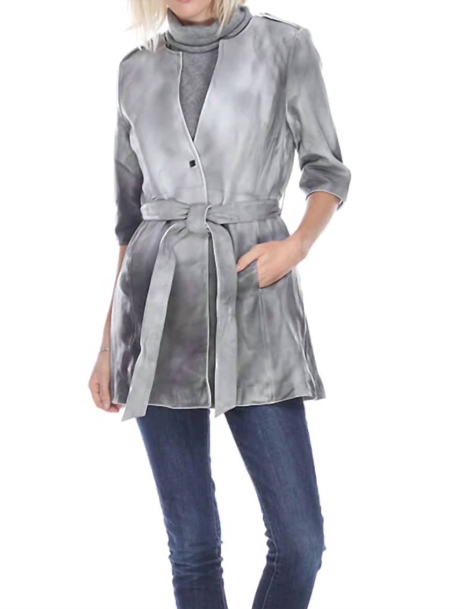 Be the first to review “Dip Dye Long Leather Coat In Grey”