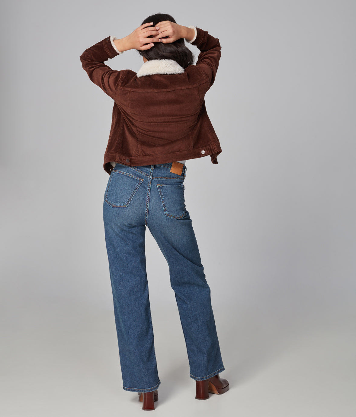 The Gabriella is a classic constructed denim jacket. This essential piece combines authentic details with clean styling. Featured here in Sherpa Chocolate Brown for cooler days.