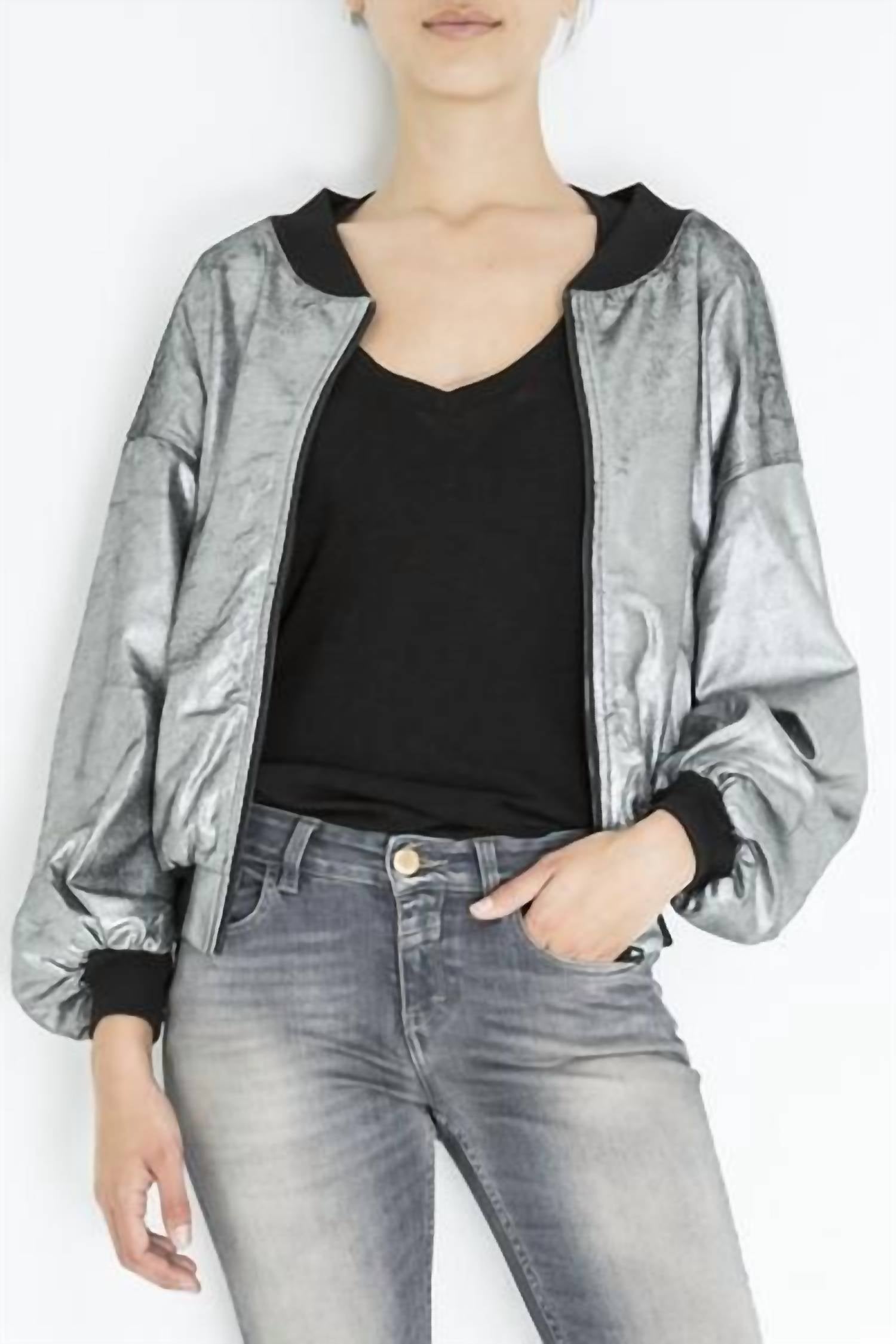 Metallic Bomber In Silver