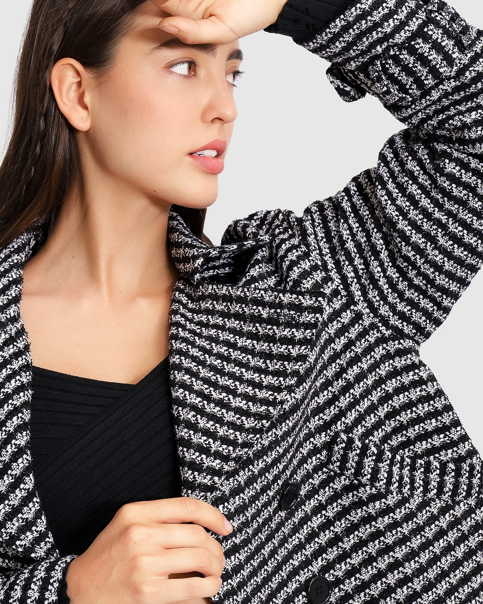 The Power Over Me Tweed Jacket takes no prisoners with its boss girl attitude. The boxy fit and a touch of sparkle adds edge to this monochromatic piece, ready for a night on the town or a day in the boardroom.
