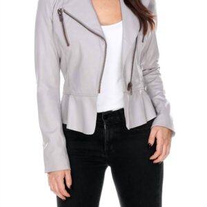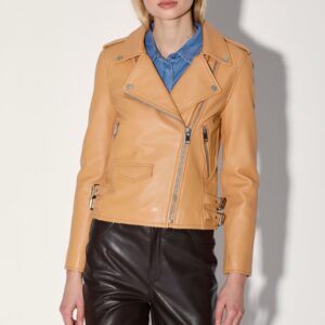 Leather Perfecto With Ruffle Jacket In Mastic